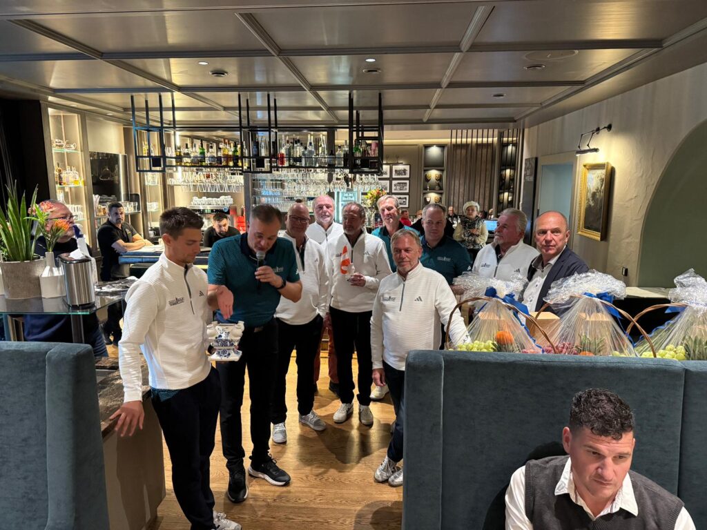 Eine Zahl dominierte diese Abschlussveranstaltung besonders – und das ist die 100: Denn am zweiten Turniertag wurde das 100. vorgabewirksame Turnier des aktuellen Vorstandteams ausgetragen. Präsident Ritzer: „Wir sind sehr, sehr stolz, diese Anzahl an Turnieren in dieser Qualität durchgeführt zu haben.“ Eine besondere Ehrung erhielt Manfred Spendling, der an allen 100 Turnieren (!) teilgenommen hat. Dafür gab es nicht nur eine Skulptur von Künstler Seppi Eder, sondern auch spontan zwei VIP-Karten für die Austria Alpine Open 2026 in Kitzbühel, überreicht von ÖGV-Generalsekretär Robert Fiegl.