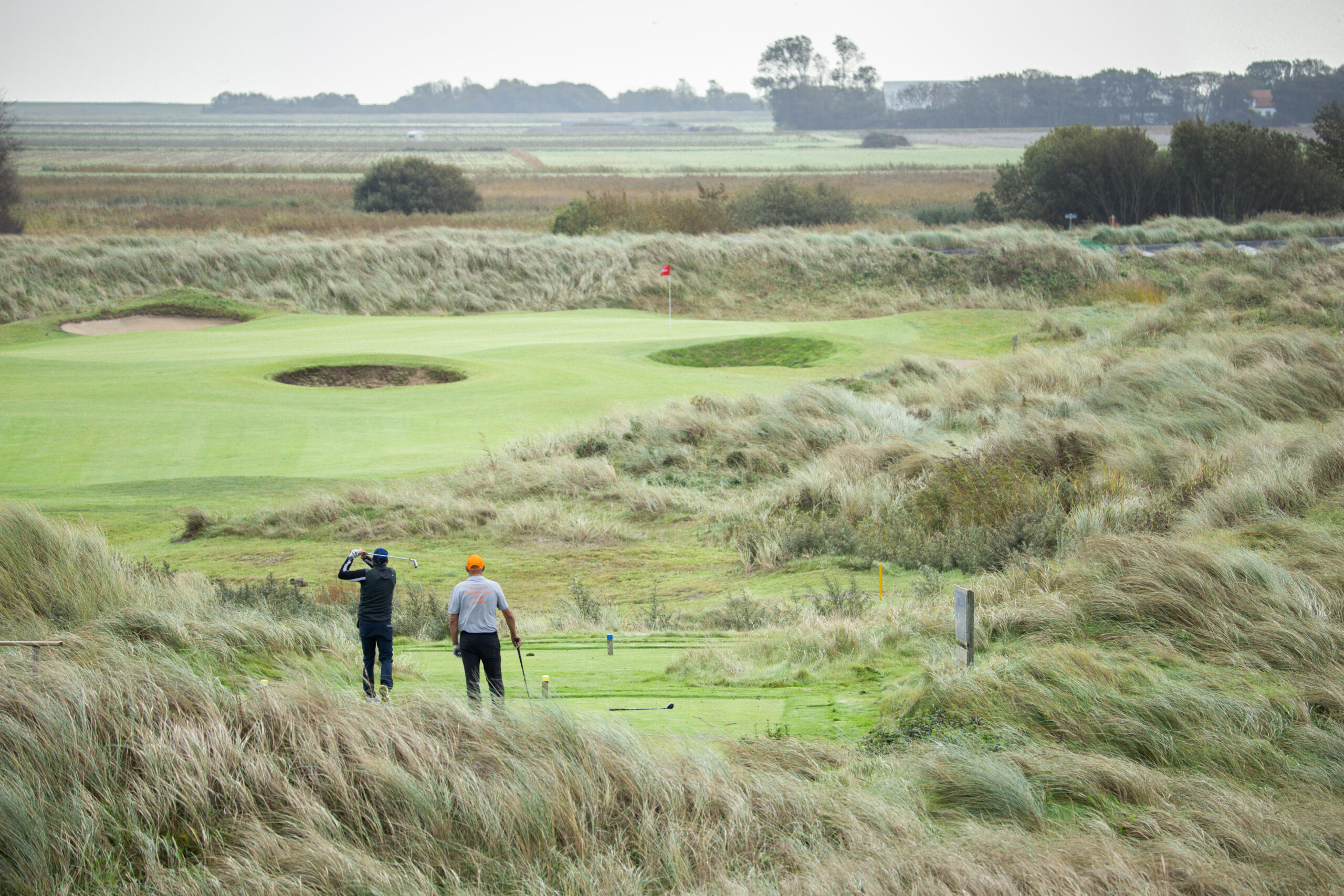 Unsere holländischen Freunde haben sich mit der Golfbaan De Texelse ein besonderes Schmuckstück für ihre Gäste einfallen lassen. Es ist ihr eigener Heimplatz in den Dünen der Insel – mit allen Facetten eines Linkkurses: in Richtung und Stärke wechselnder Wind, in Feuchtigkeitsmenge wechselnder Regen, mannshohe, dichte Gräser. Und ein kleines bisschen Sonne.