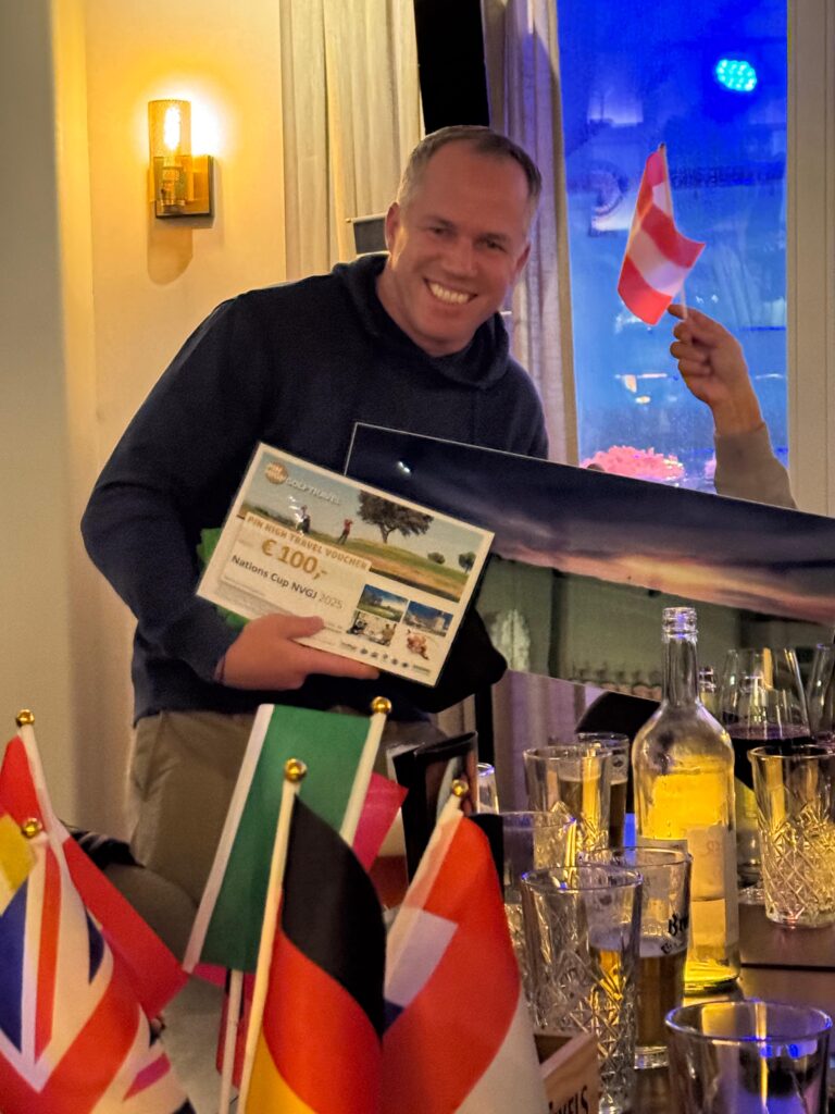 Am Dienstag folgt die Proberunde – mit einem Zuckerl: die besten Einzelspieler Stableford erhalten schöne Preise. Wir testen unsere Spielpaarungen zum ersten Mal (nach der Probe in Fontana bei holländischen Bedingungen) im Bestball-Modus. Das hält einen von uns nicht ab, gleich einmal den Platz in Texel – nicht zum letzten Mal – zu zerlegen. Patrick Niederecker sichert sich mit 41 Punkten den Herrensieg und ein schönes grosses Bild fürs Handgepäck. Damit sorgt er erstmals – und wieder nicht zum letzten Mal – für grosses Staunen, besonders bei den Orangen.